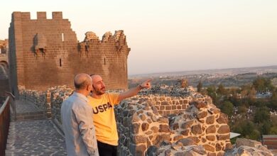 Gazeteciler Gecesi’nin ardından dışarı çıkıp surların etrafını dolaşıyoruz. Gökhan, cep telefonunun ışığını kullanarak surun üzerindeki güneş kabartmasını bana gösteriyor.Sabaha da…